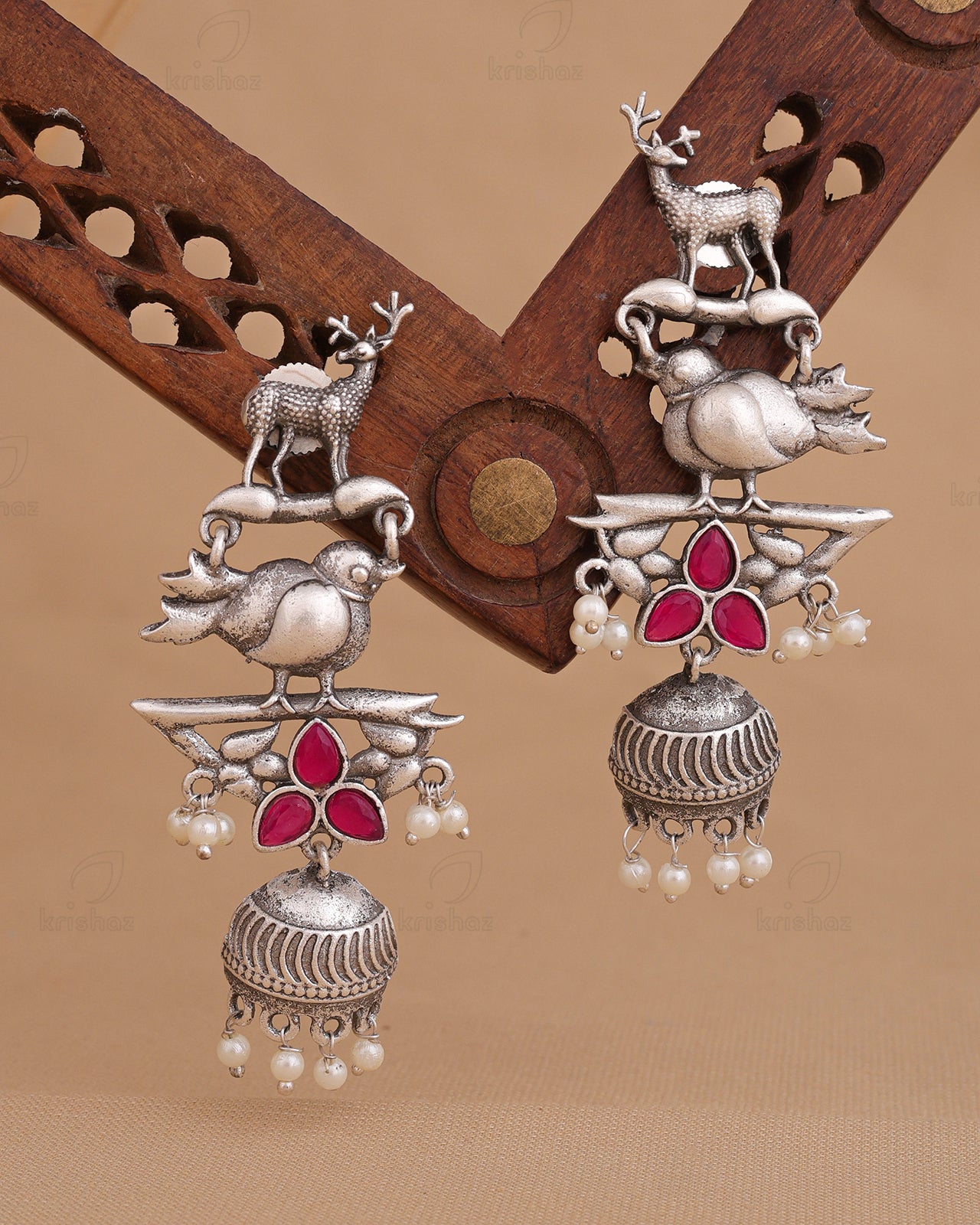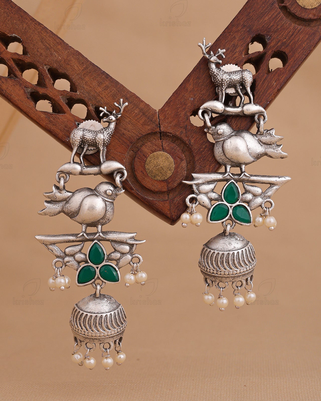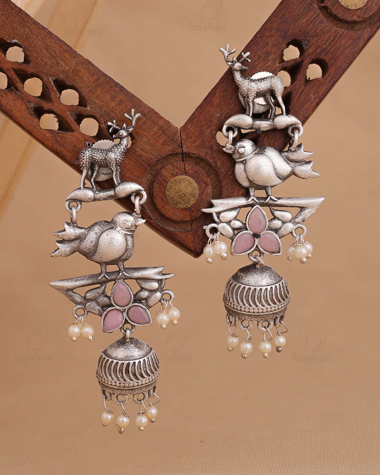 Instantly add a splash of chic to your ensemble with these classy KRISHAZ earrings. An eye-catching pair of earrings will give you additional excuses to dress up this festive Season. Our Silver Look Alike Earrings include delicate Eye catchy designs with tinkling pearl and stone trim that gives the look a Vibrant personality